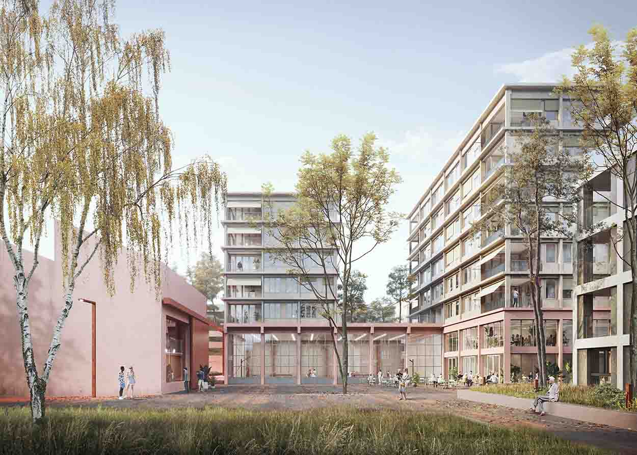 The program mix consists of urban programs with a social and societal character. New affordable housing for young people and students, a neighborhood living room, sports hall, co-working spaces, hotel, food market and catering. Strengthening the local (social) economy goes hand in hand with a strong relationship with the shared space public space with ample space for slow traffic. The outdoor space is designed as the backbone of spaces that students, residents, passers-by, entrepreneurs and working city dwellers can use collectively and individually in various ways.