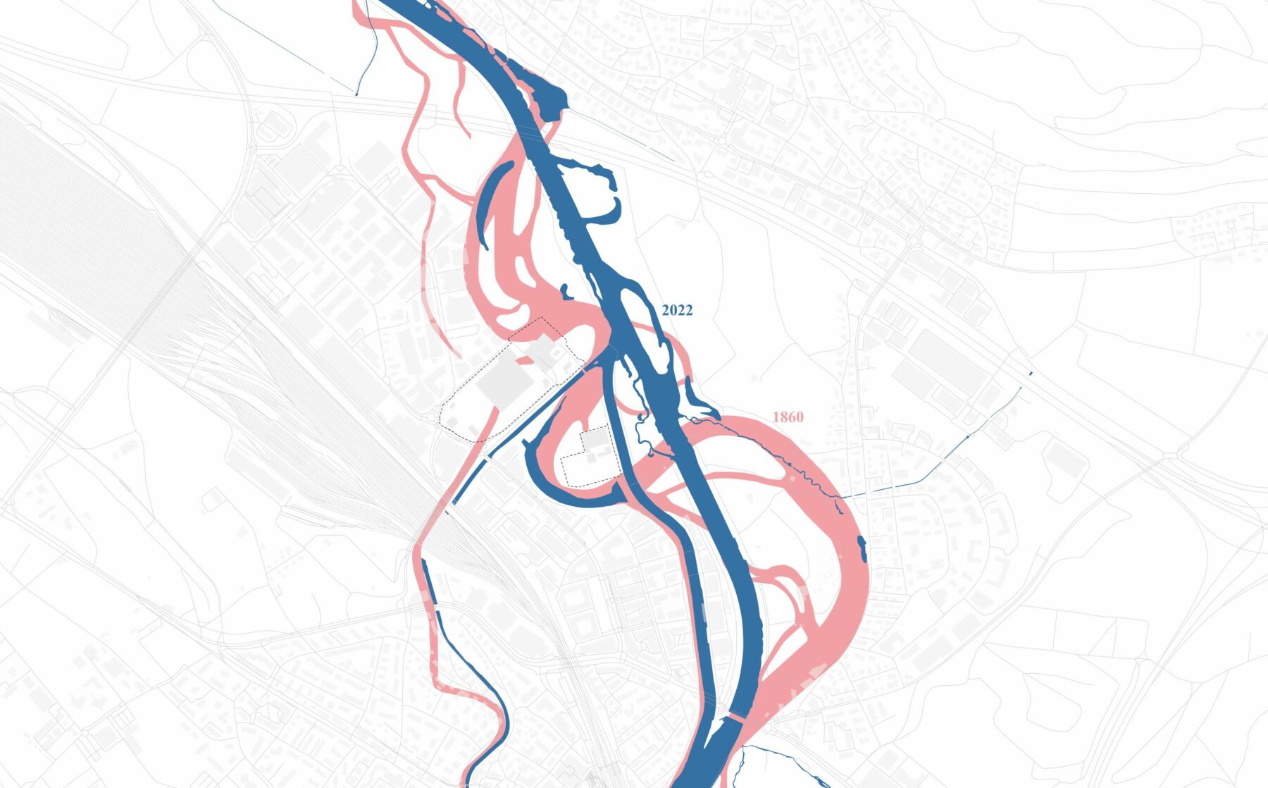 The Reppisch is currently a canalised mountain creek that flows past the plant into the Limmat via Dietikon. This creek is an important ecological link for interchange between the mountain biotope and the river biotope species. It is also a recreational (bicycle) connection coming from Dietikon, which will eventually cross the Limmat by means of a bridge.