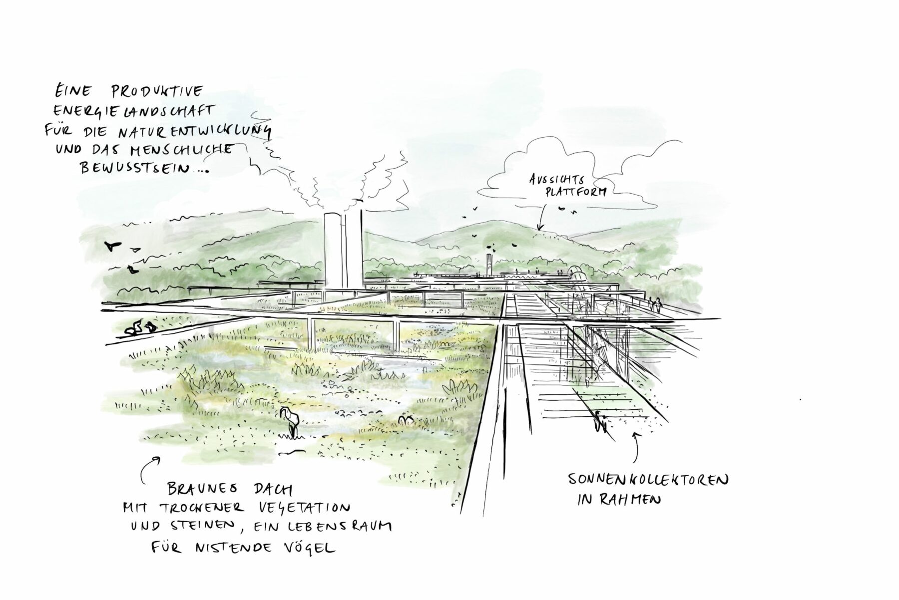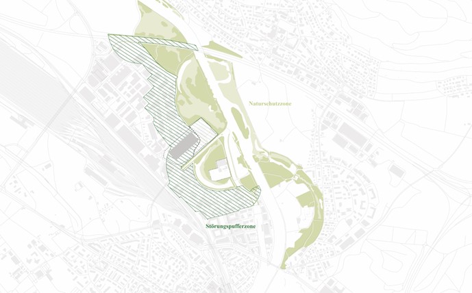 The whole is carefully intertwined with its surroundings in several ways. The zone along the Limmat and the Reppisch forms the basis for a solid ecological and recreational connection. The complex itself is connected to sustainable mobility: its own branch line to the railway. In addition, the power plant forms the basis of a smart grid for the immediate surroundings.