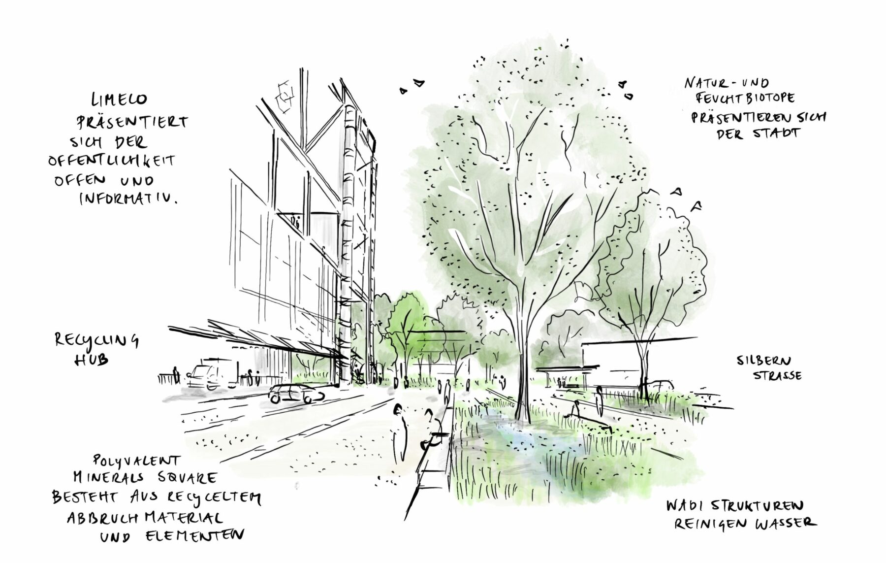 Limeco’s complex is located along the Limmat River and the Reppisch mountain creek. Several nature development projects are already taking place, particularly along the Limmat. The unique location along these potentially high-quality connections has been exploited by designing the complex as an integral part of the highly dynamic river landscape.