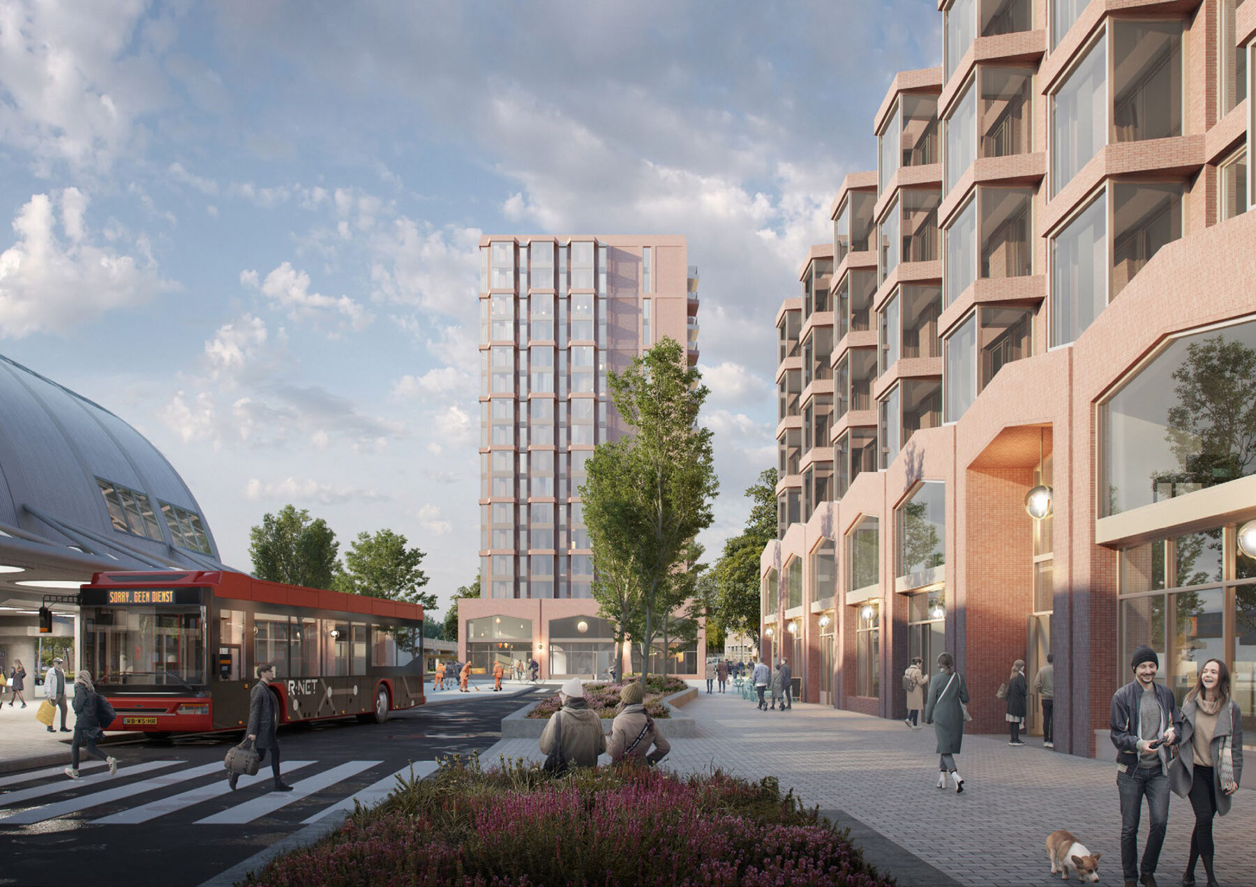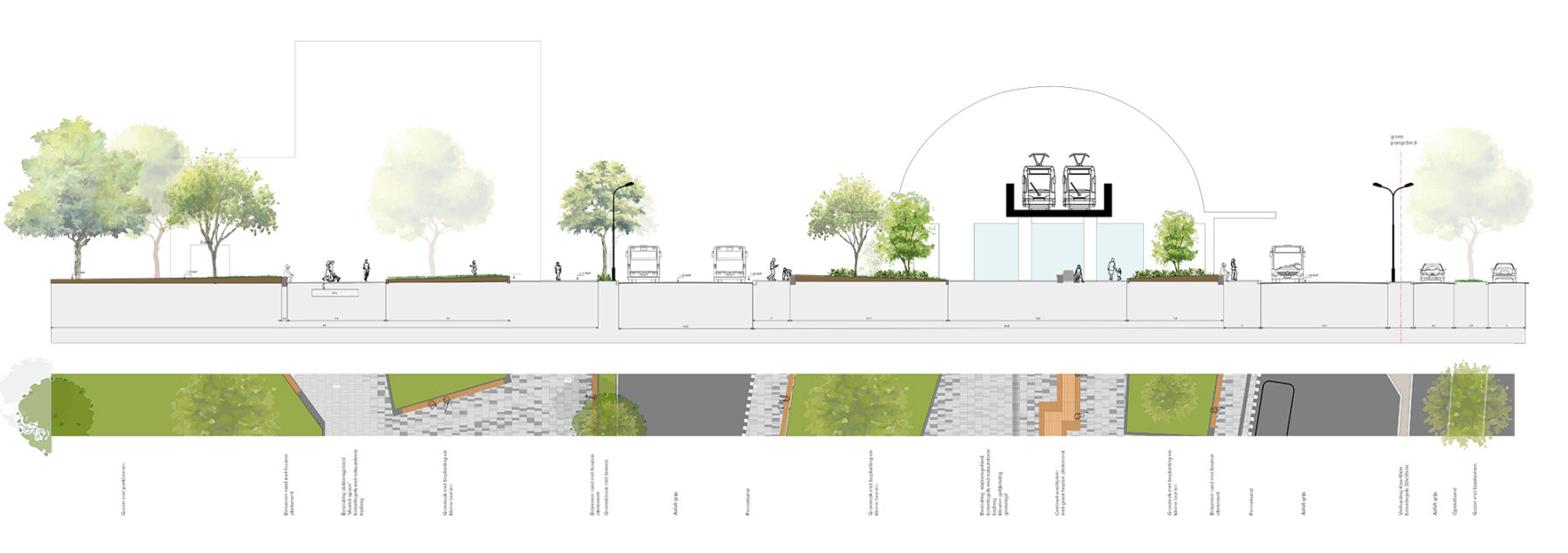 After careful analysis of the requirements and tasks around the station and research by a ‘street psychologist’, we produced a detailed design for redevelopment. The area is designed as a high-quality and robust station area with an enlarged ‘bus island’ with platforms all around. By paying attention to accessibility and the connections with the surroundings, the connection to the city center has been improved, a large bicycle parking facility has been designed and the parking lot has been transformed into a Park-and-ride. Compared to the current situation, the bus island will be safer, more accessible to different types of travelers and it will become greener. The island offers space for waiting comfort as well as space for flows of people who transfer.