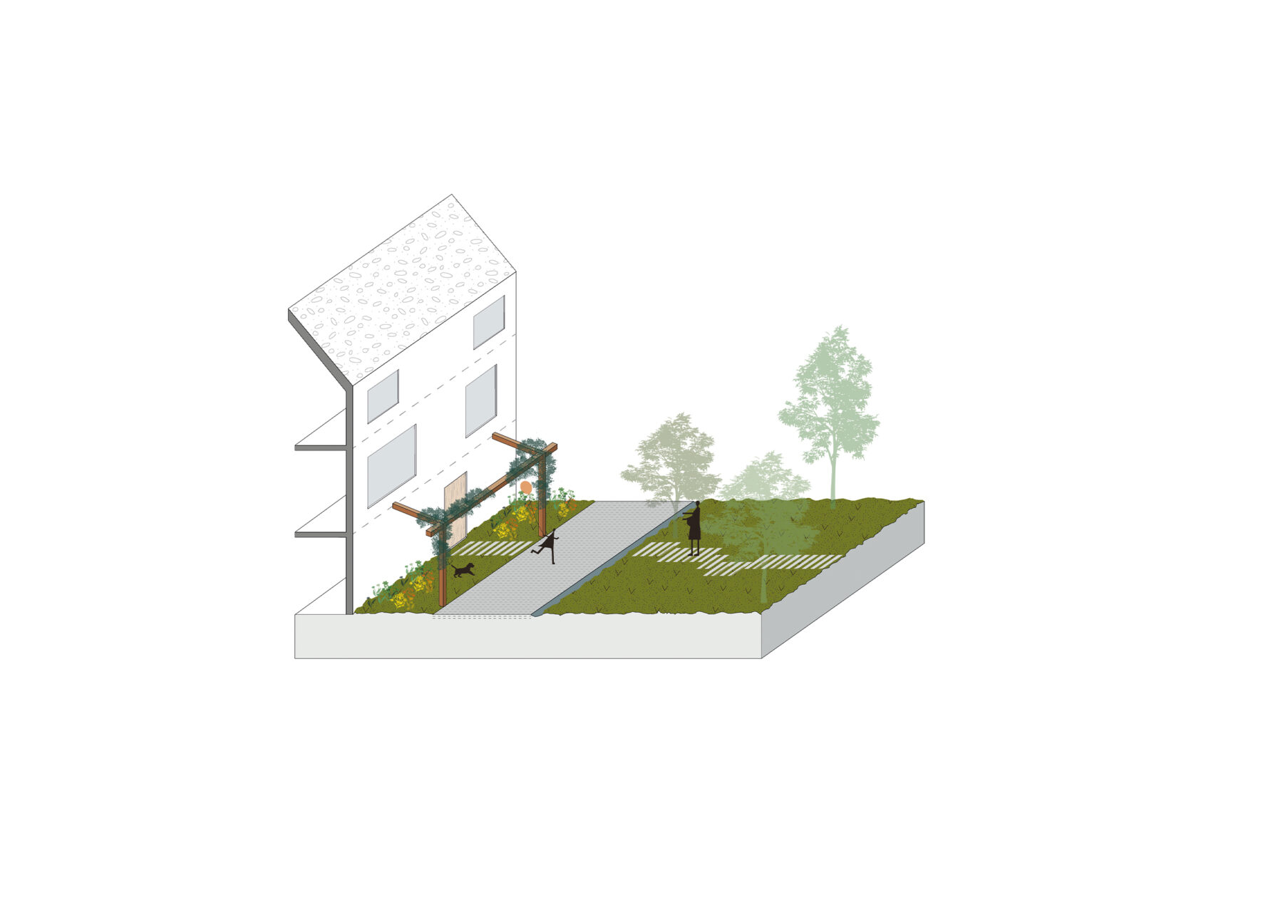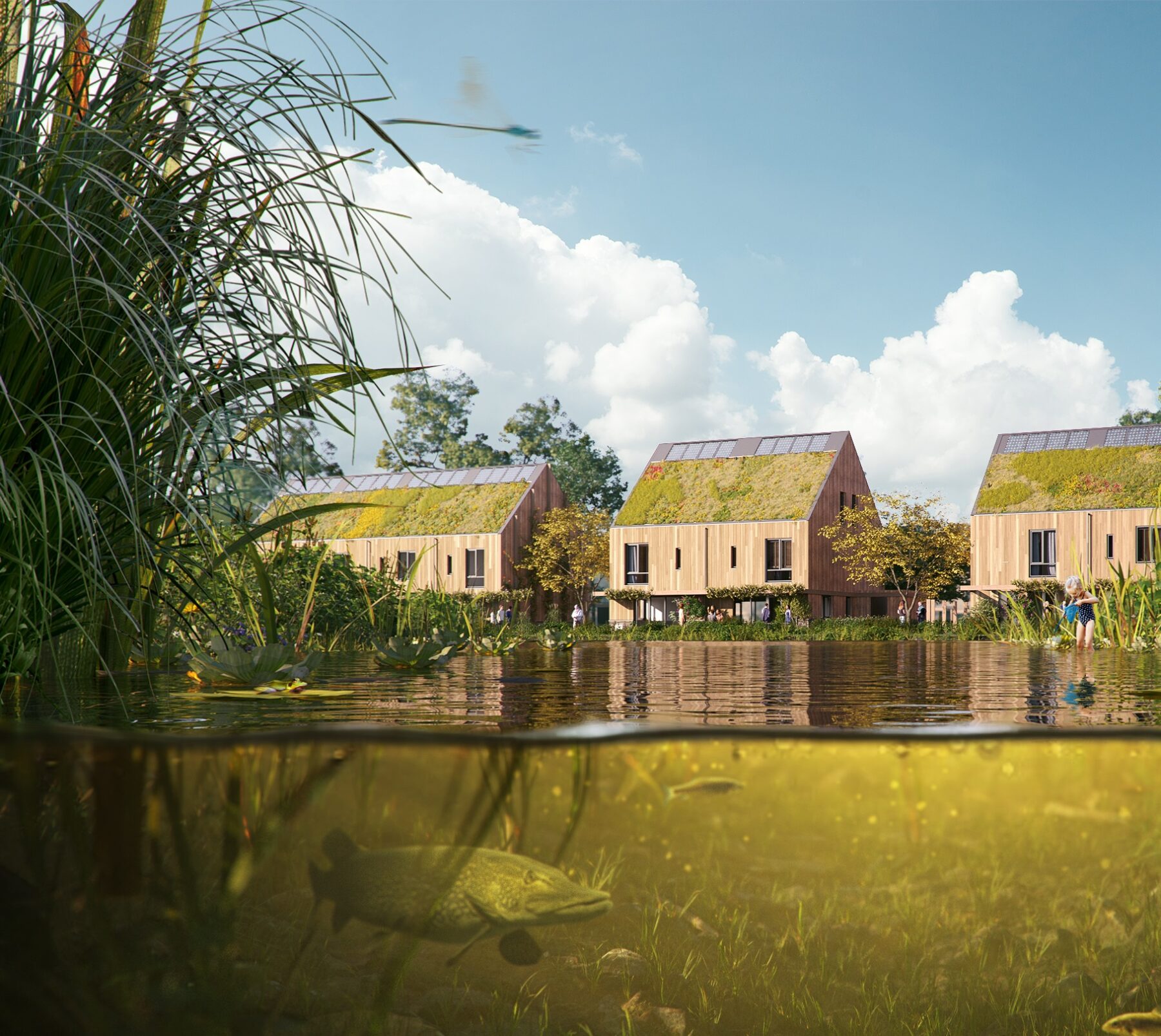 Together with Synchroon, a concept was sought in which all homes benefit from the greenery. They therefore face the various landscape identities. The houses on the park canal, for example, have a veranda at the front that makes direct contact with the public greenery.