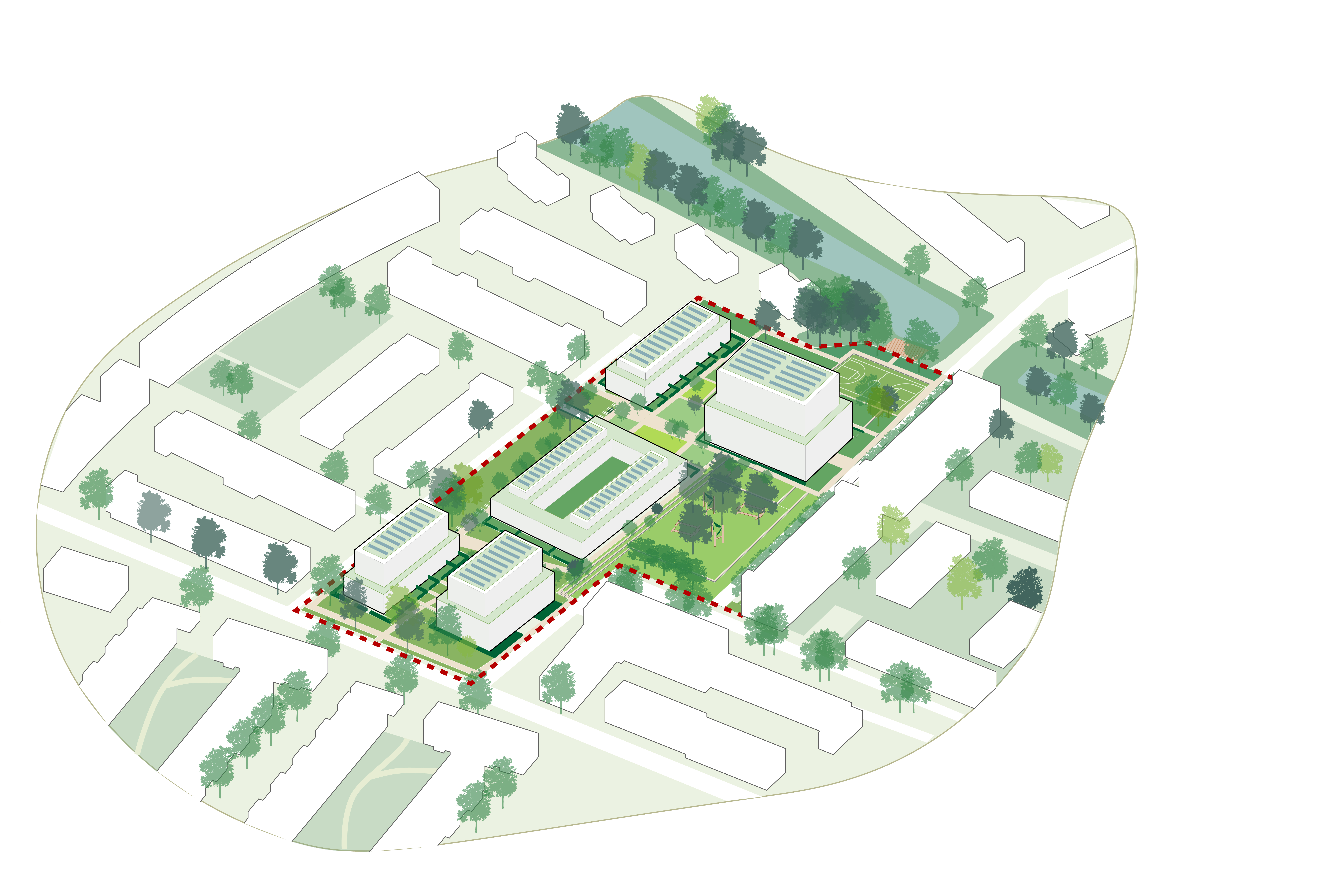 The focus is to preserve the area’s current social ecology as the heart of the neighbourhood, combined with the desired housing development. Accordingly, the central issue is to reintroduce many of the park’s current functions into the future plan. It will result in a place for existing and new residents to play, enjoy sports and socialise in an attractive park setting.