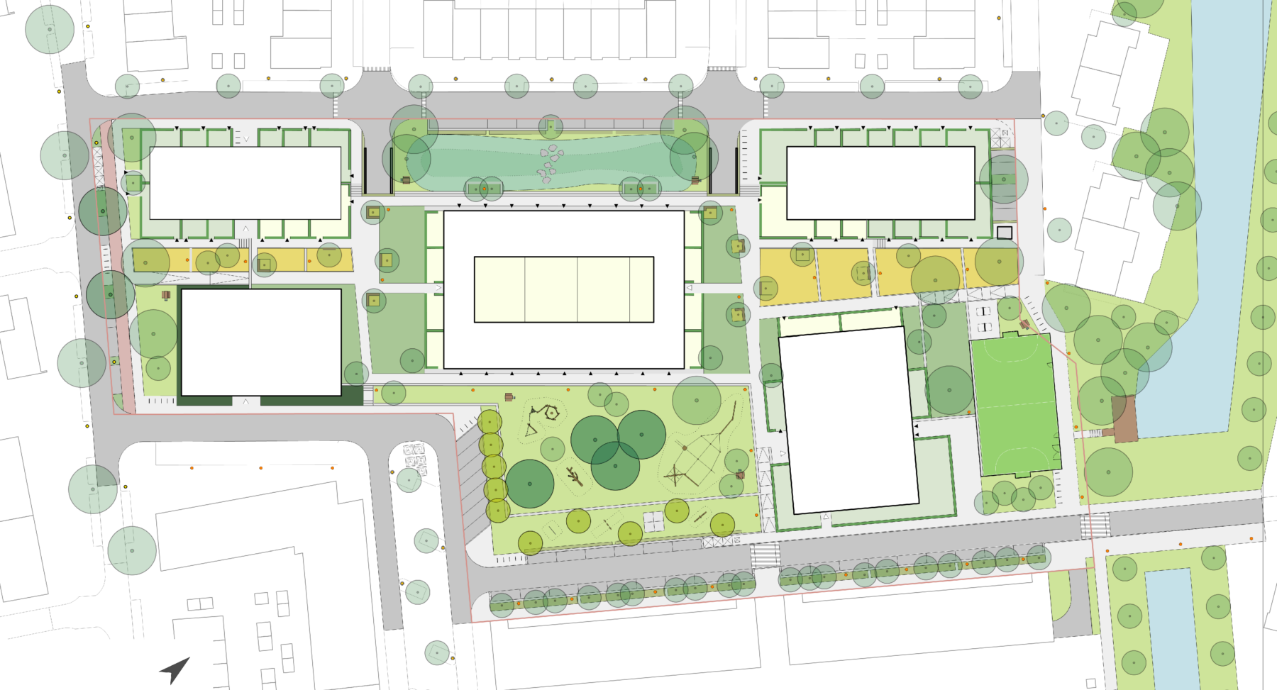 The focus is to preserve the area’s current social ecology as the heart of the neighbourhood, combined with the desired housing development. Accordingly, the central issue is to reintroduce many of the park’s current functions into the future plan. It will result in a place for existing and new residents to play, enjoy sports and socialise in an attractive park setting.