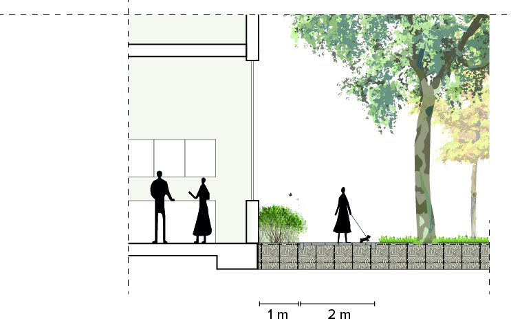Preserving green space and optimising its associated functions are crucial within a densification project. Not only to improve the well-being of residents but also to ensure social safety. We shift the boundaries of communal basement structures to a 2/3 underground car park – this significantly increases the line of sight.