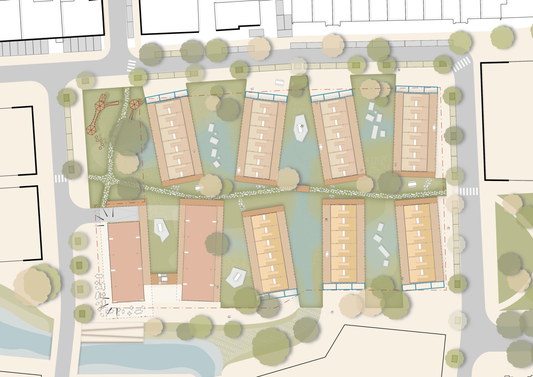 De Ontwerpprijsvraag biobased en natuurinclusief bouwen op de Nieuwe Veemarkt in Zwolle is de tweede prijsvraag binnen het programma. Een nieuwe bouwcultuur, waarmee het College van Rijksadviseurs biobased en natuurinclusief bouwen wil stimuleren. Doel van dit initiatief is om vernieuwing en versnelling samen te laten vallen met de verduurzaming en verfraaiing van de woningbouw, waarbij de bouw in balans is met zijn natuurlijke omgeving. Bekijk de ontwerpplannen hieronder. Wil je de ontwerpplannen downloaden? Dat kan ook, klik op “download” en lees het op elk gewenst moment.