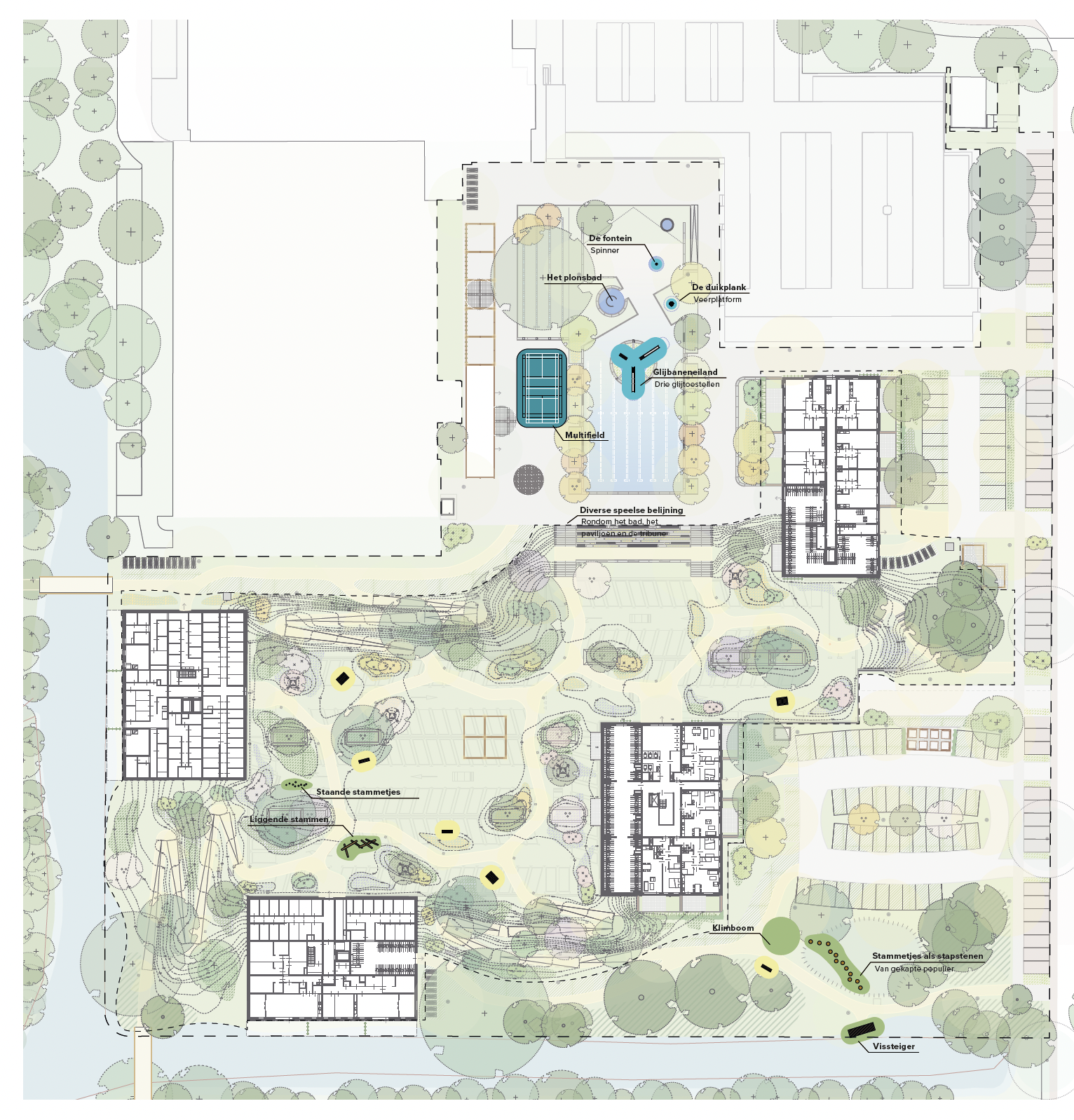 Het oude openluchtzwembad van de Blinkert is onze inspiratie geweest om tot een avontuurlijk en uitdagend activiteiten woonlandschap te komen waar wonen, verblijven, recreƫren, bewegen en sporten centraal staat. Een continue landschap dat ecologisch en landschappelijk de verbinding maakt met de bestaande heemtuin en bewoners, passanten en de sporters van de naastgelegen David Lloyds uitdaagt tot bewegen en sporten.