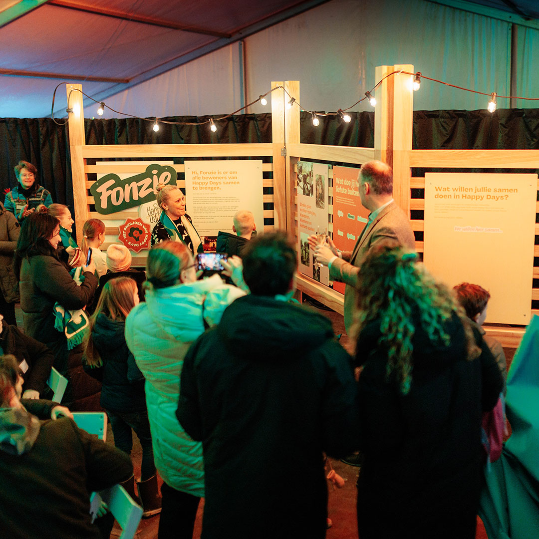 Het ‘geluksgevoel’ van de camping en op vakantie zijn is de basis van het plan voor Happy Days. Dit is in alle aspecten terug te vinden; de vrije verkaveling, het groene landschap tussen de woningen, de omringende boskraag, het buitenleven en de sociale interactie die wordt gestimuleerd door de verschillende ontmoetingsplekken in het plan. Je hebt je eigen woning, maar deelt ook een groot groen park met de buurt waar je allerlei activiteiten kan ondernemen: spelen, wandelen, fietsen, tennissen, vissen, hutten bouwen, ontspannen en ontmoeten. Net als op de camping vind je in het ontwerp een picknicktafel, is er ruimte om een balletje te trappen en met lekker weer kun je met de buren barbecueën. Happy Days is een woonwijk waar vakantie gevoel gestimuleerd wordt, met een rijke gelaagdheid, waarbij integraal is nagedacht over thema’s als ecologie, klimaatbestendigheid, duurzaamheid, ontmoeting en activiteit. Een plek waar de auto niet thuishoort. Een plek waarin je kunt ontsnappen aan de drukte van de stad en waarin het allemaal draait om buiten zijn.