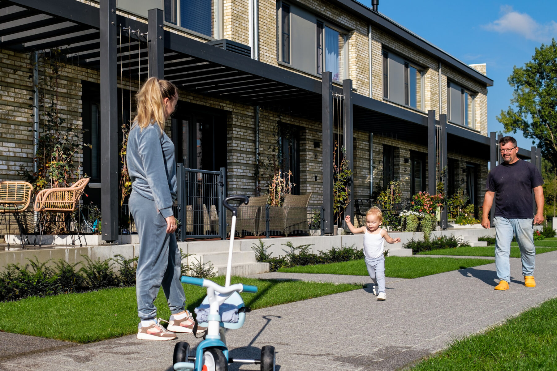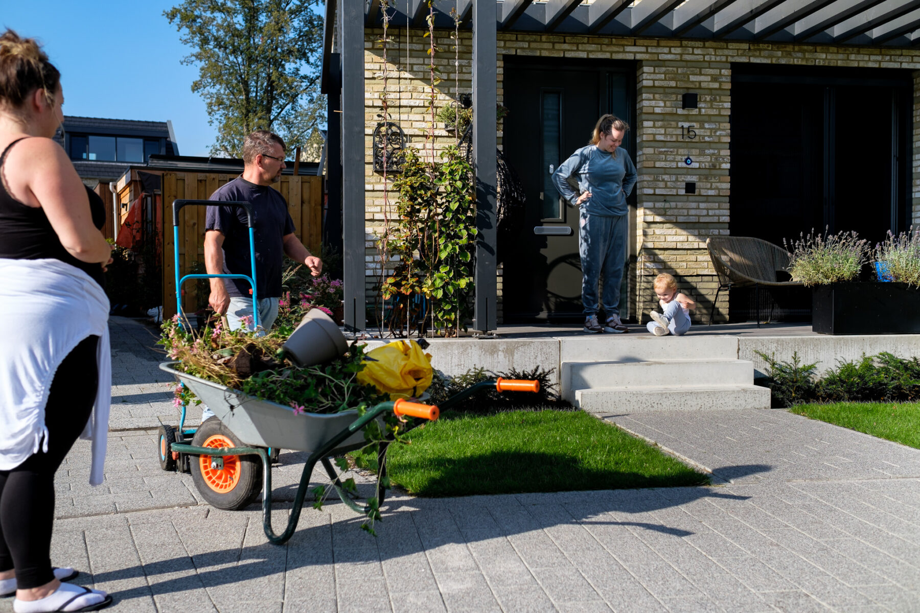 De aandacht voor de overgangen zit in de details. Binnen de verhoogde voortuinen hebben de bewoners zelf de keuze hebben hoe ze inrichten, waardoor er een prettige balans ontstaat tussen enerzijds een doorgaande structuur (voortuinen met pergola’s, waarbinnen ruimte is voor individuele expressie.